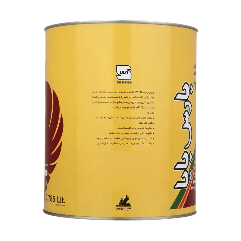 روغن موتور پارس پایا فلزی مدل 20W50 SJ حجم 3.75 لیتر بسته 6 عددی